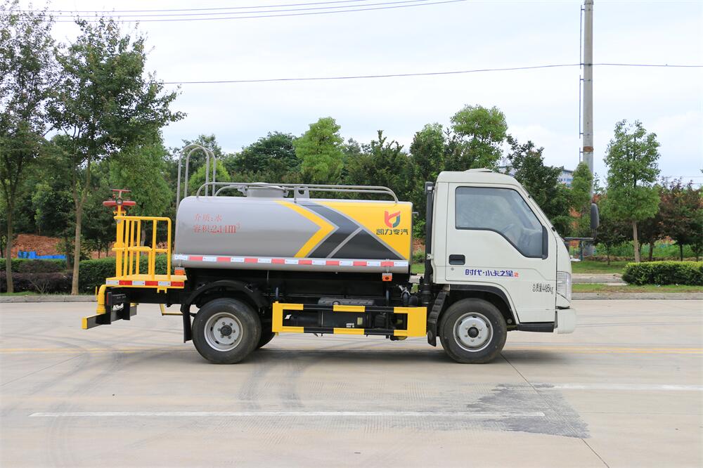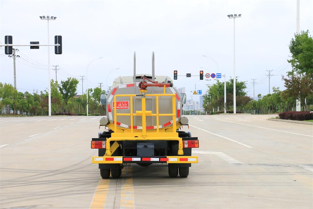 灑水車前裝有鴨形噴嘴或圓頭沖嘴,后面裝有圓柱開灑水噴嘴或蓮蓬頭噴嘴,后部有一工作平臺,裝配有水炮。后部還可裝8個噴嘴(選裝)。