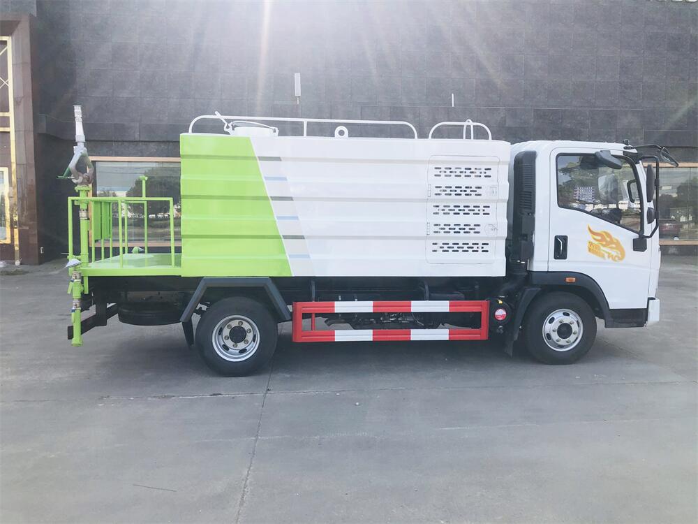 灑水車前裝有鴨形噴嘴或圓頭沖嘴,后面裝有圓柱開灑水噴嘴或蓮蓬頭噴嘴,后部有一工作平臺,裝配有水炮。后部還可裝8個(gè)噴嘴(選裝)。