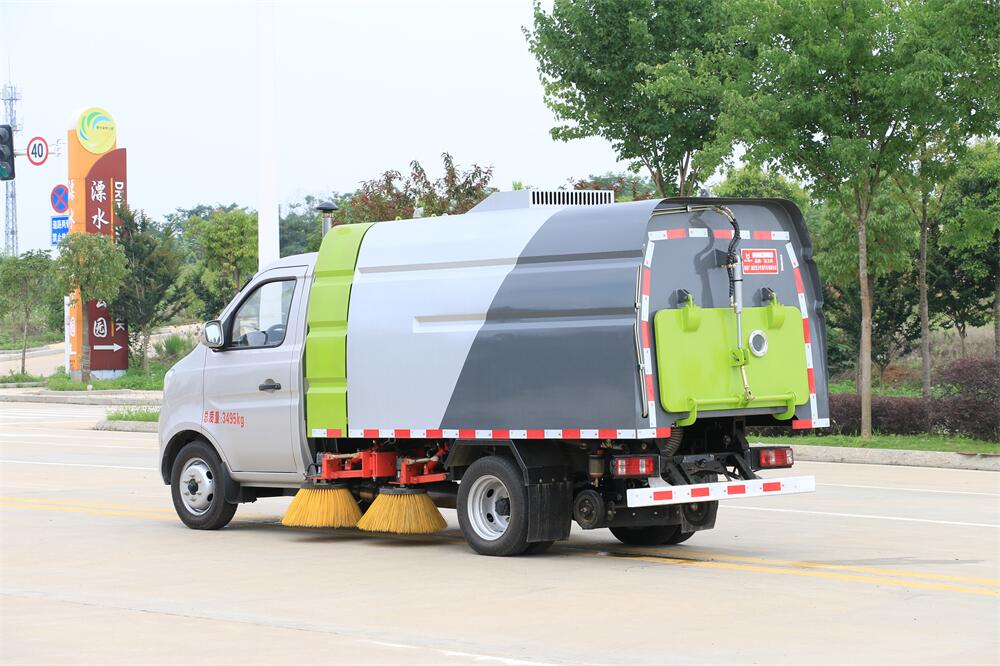 1.采用吸掃混合的方式收集垃圾,濕式除塵、電液,液壓傾翻卸料的作業(yè)方式對路面進(jìn)行清掃作業(yè)。