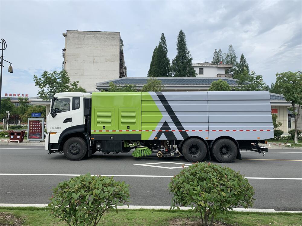 洗掃潔凈度高,該車型齊全的功能解決不同路面環境的作業,一次作業洗掃效率達98%以上,前沖功能、洗掃功能、路沿清洗功能、后噴霧功能、低壓沖洗功能以及采用的吸盤+左右側噴桿結構,路面、溝縫、彎道處、路沿上等處的灰塵、垃圾均能處理干凈,確保環境干凈、整潔。