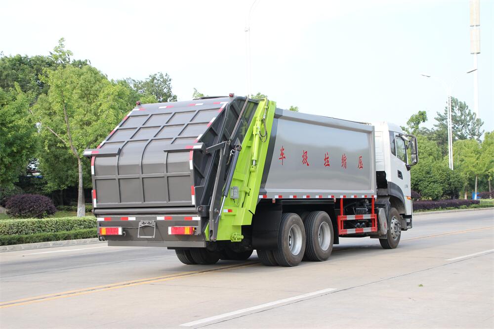 上裝配置:垃圾箱容積:18,20方選擇,新款平面弧形廂體,廂體材料為武鋼優質碳鋼,PLC一鍵操作**,手電一體操作模式,兩側雙電控,帶駕駛室內操作,底板支撐加強,雙向壓縮,開放式易清潔污水箱。壓縮式垃圾車采用機電液一體化技術,借助機、電、液聯合自動**系統、電腦**、手動操作系統,通過填裝器和推鏟等專用裝置,實現垃圾倒入、壓碎或壓扁、強力裝填,把垃圾擠入車廂并壓實和推卸,污水全部進入污水廂,解決了垃圾運輸過程中的二次污染的問題。壓縮式垃圾車具有自動反復壓縮以及蠕動壓縮功能,壓縮比高、密封性好、裝載量大﹑操作方便、環保性好﹑整車利用功率高等優點。作業自動化,垃圾收集方式簡便、高效。后翻轉機構選裝:1、掛塑料桶式翻轉機構;2、掛鐵桶式翻轉機構;3、擺臂式翻轉機構; 4、簸箕斗式翻轉機構。