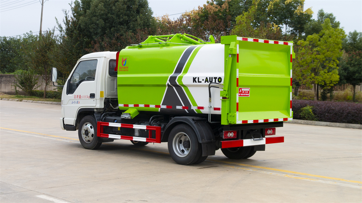 5方掛桶垃圾車-福田小卡3藍牌側裝壓縮掛桶垃圾車廠家