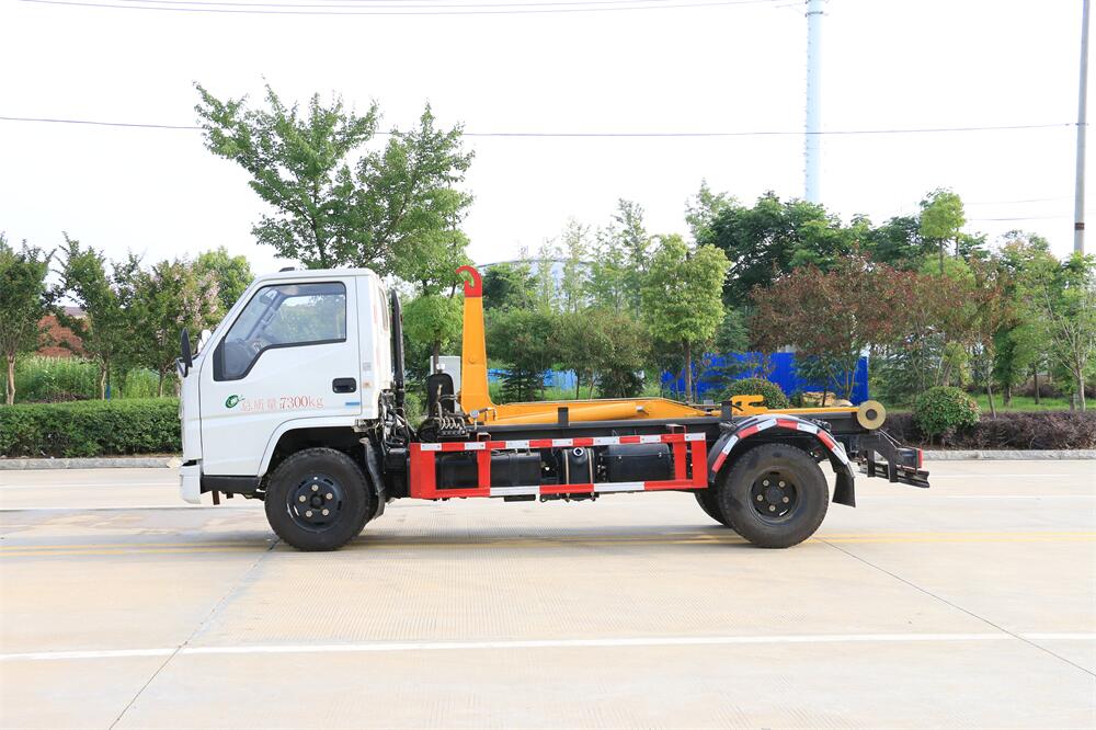 勾臂式垃圾車(車廂可卸式垃圾車)介紹: 車廂可卸式垃圾車又叫拉臂式垃圾車,是一種采用高新設(shè)計(jì)可伸縮的鉤臂,實(shí)現(xiàn)垃圾廂的二次吊裝,自吊上放下,可自行傾倒垃圾的環(huán)衛(wèi)設(shè)備。 拉臂式垃圾車結(jié)構(gòu)簡(jiǎn)單,操作穩(wěn)定方便,裝卸效率高,機(jī)械化程度高,節(jié)省人力。鉤臂垃圾車一車可帶多個(gè)垃圾廂,在裝卸的運(yùn)輸過(guò)程中可有效地避免二次污染。 拉臂垃圾車采用高新設(shè)計(jì)可擺動(dòng)的鉤臂,垃圾箱由框架、開(kāi)啟油缸、滑輪、后門和若干加強(qiáng)框架與鋼板焊接而成。調(diào)換貨廂快捷方便,貨廂上帶蓋(倒垃圾時(shí)可翻開(kāi)),鉤臂垃圾車?yán)鴰w可選用碳鋼、不銹鋼材質(zhì)、內(nèi)部采取環(huán)氧樹(shù)脂防腐處理,改裝部分與原車底盤為可分離式,維修方便且保持了原車的機(jī)動(dòng)性及行駛性能。