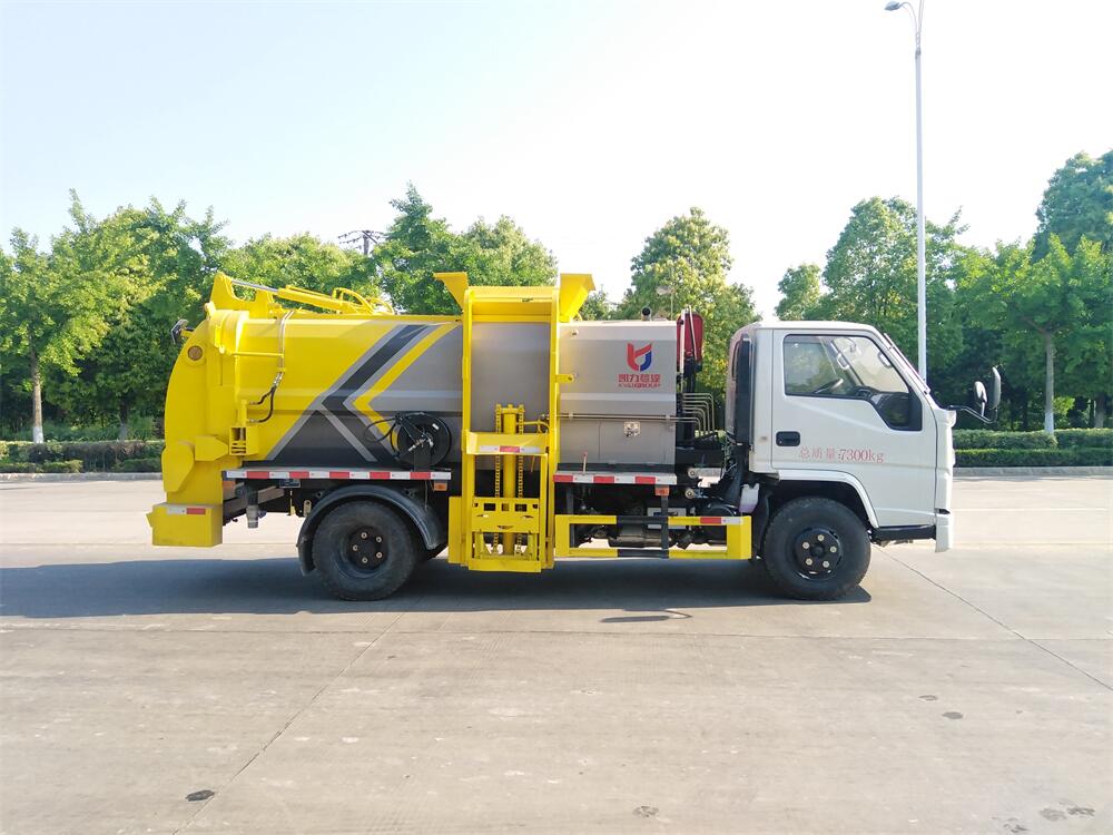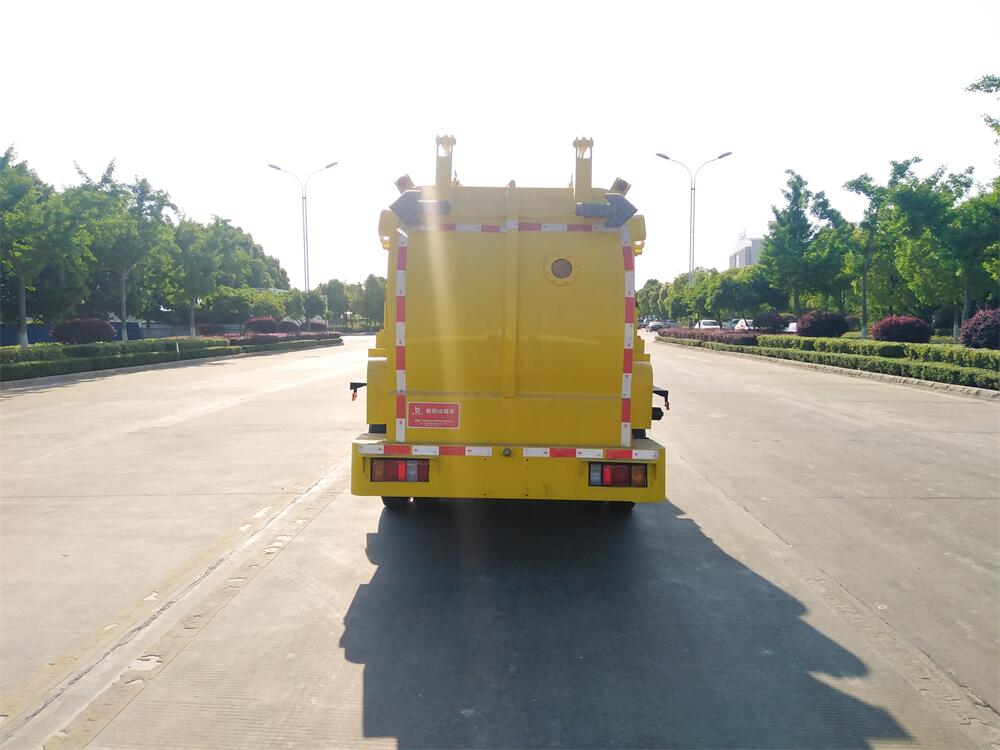上裝配置:罐體容積6m3,配備120L/240L掛桶提升翻轉機構,液壓系統,后蓋液壓鎖緊開啟,罐體可以舉升自卸,尾部帶自流閥;用于運輸液態垃圾,其特點操作簡單,密封性好,無泄漏,無異味;可選裝固液分離功能,推板擠壓功能,常用于餐館的垃圾轉運處理。
