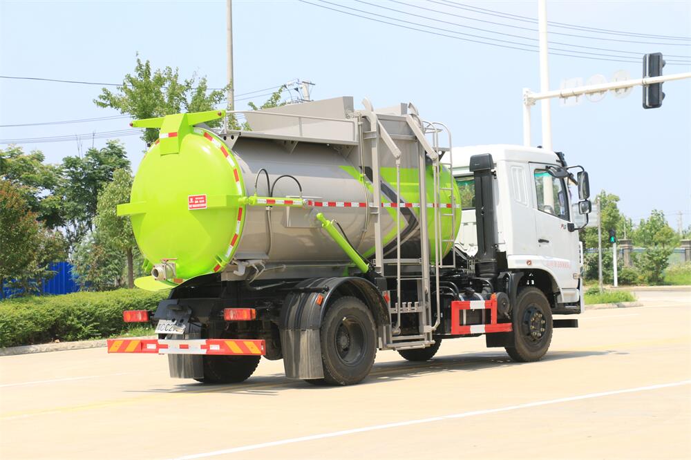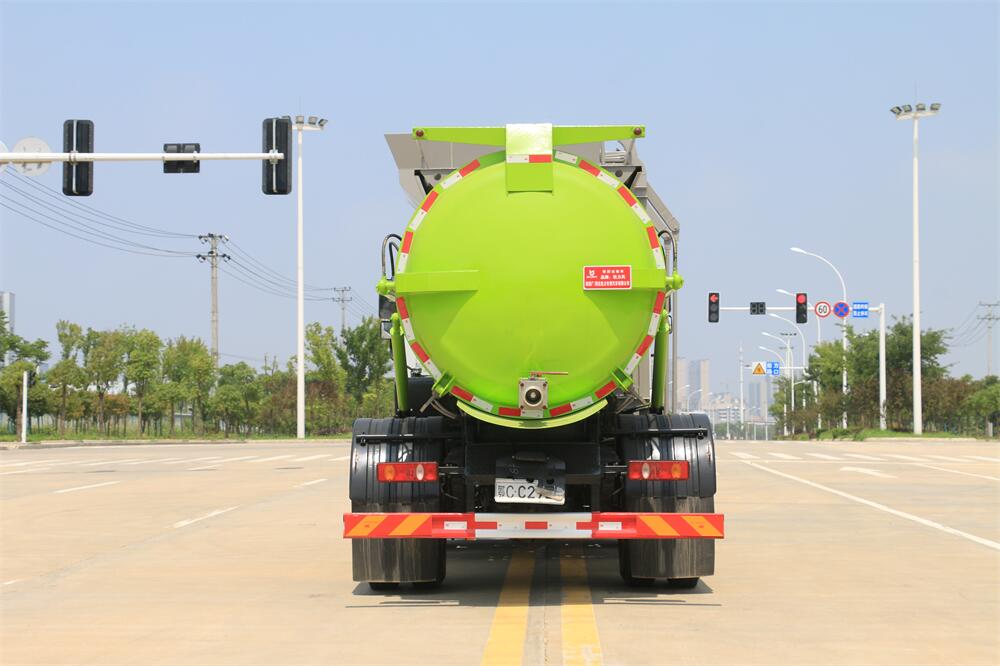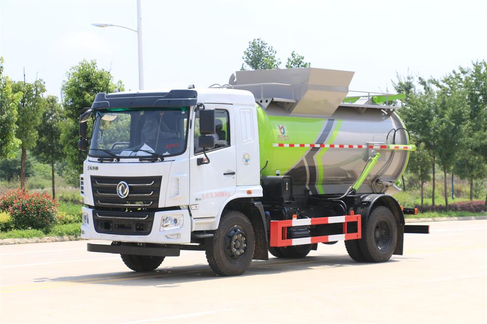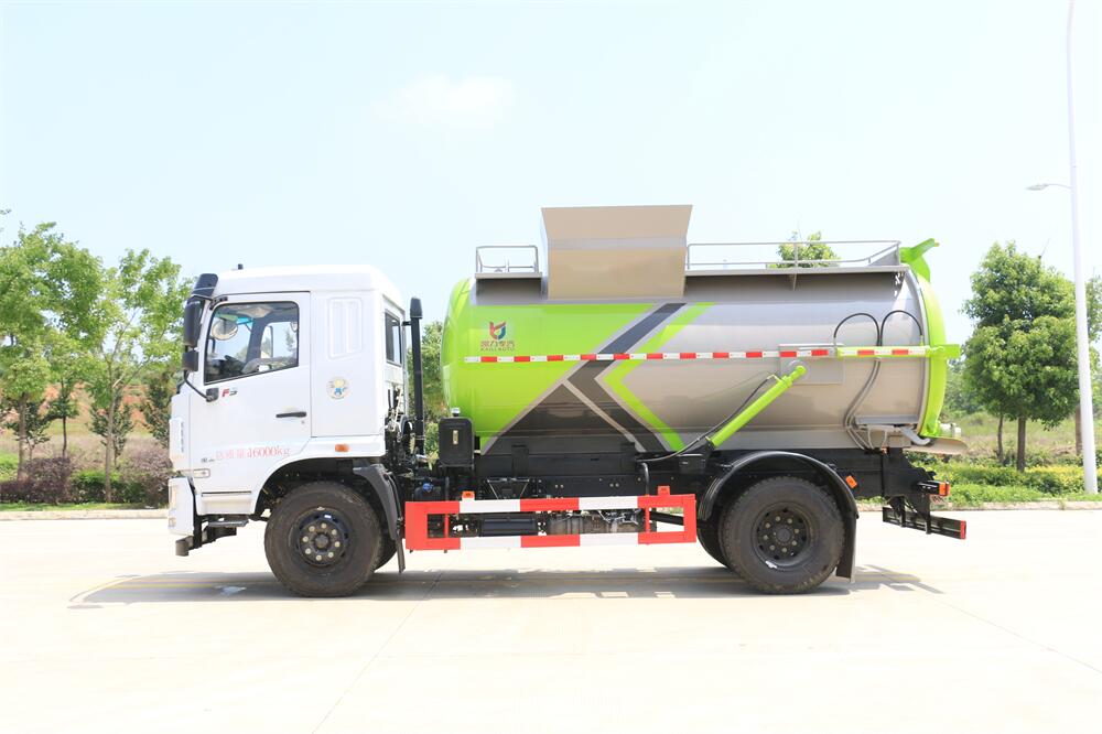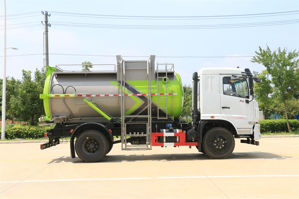 上裝配置:罐體容積10m3,配備120L/240L掛桶提升翻轉(zhuǎn)機(jī)構(gòu),液壓系統(tǒng),后蓋液壓鎖緊開啟,罐體可以舉升自卸,尾部帶自流閥;用于運(yùn)輸液態(tài)垃圾,其特點(diǎn)操作簡(jiǎn)單,密封性好,無泄漏,無異味;可選裝固液分離功能,推板擠壓功能,常用于餐館的垃圾轉(zhuǎn)運(yùn)處理。