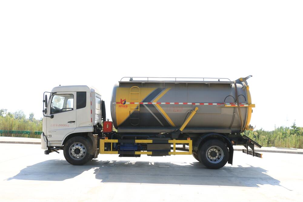5.液壓舉升自卸功能,便于將各種污物傾倒干凈,后罐門可以液壓啟動(dòng)開啟,便于清理罐體內(nèi)的沉積物,凝固物及對(duì)罐體內(nèi)部進(jìn)行維修、保養(yǎng),液壓取力增強(qiáng)了系統(tǒng)的穩(wěn)定性。