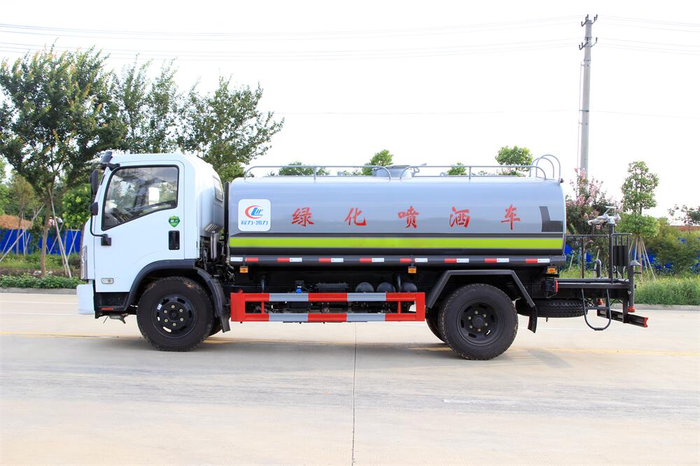 灑水車性能特點(diǎn):前沖(噴)后灑,帶側(cè)噴,罐體后帶工作平臺(tái),平臺(tái)上安裝綠化灑水炮,灑水炮可360旋轉(zhuǎn),可連續(xù)調(diào)成直沖狀、大雨、小雨、毛毛雨,帶安全護(hù)欄,配備全國質(zhì)量評(píng)比**名的杭州威龍大功率專用 灑水泵,泵可自吸自排,安裝過濾網(wǎng),帶消防接口,可通過消防栓進(jìn)水,帶自流閥,隨車選裝20米綠化卷盤,可噴灑農(nóng)藥。