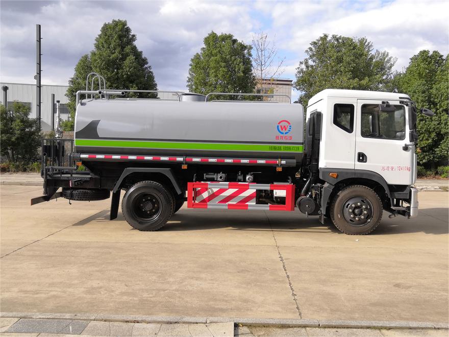 灑水車性能特點:前沖(噴)后灑,帶側噴,罐體后帶工作平臺,平臺上安裝綠化灑水炮,灑水炮可360旋轉,可連續調成直沖狀、大雨、小雨、毛毛雨,帶安全護欄,配備全國質量評比**名的杭州威龍大功率專用  灑水泵,泵可自吸自排,安裝過濾網,帶消防接口,可通過消防栓進水,帶自流閥,隨車選裝20米綠化卷盤,可噴灑農藥。
