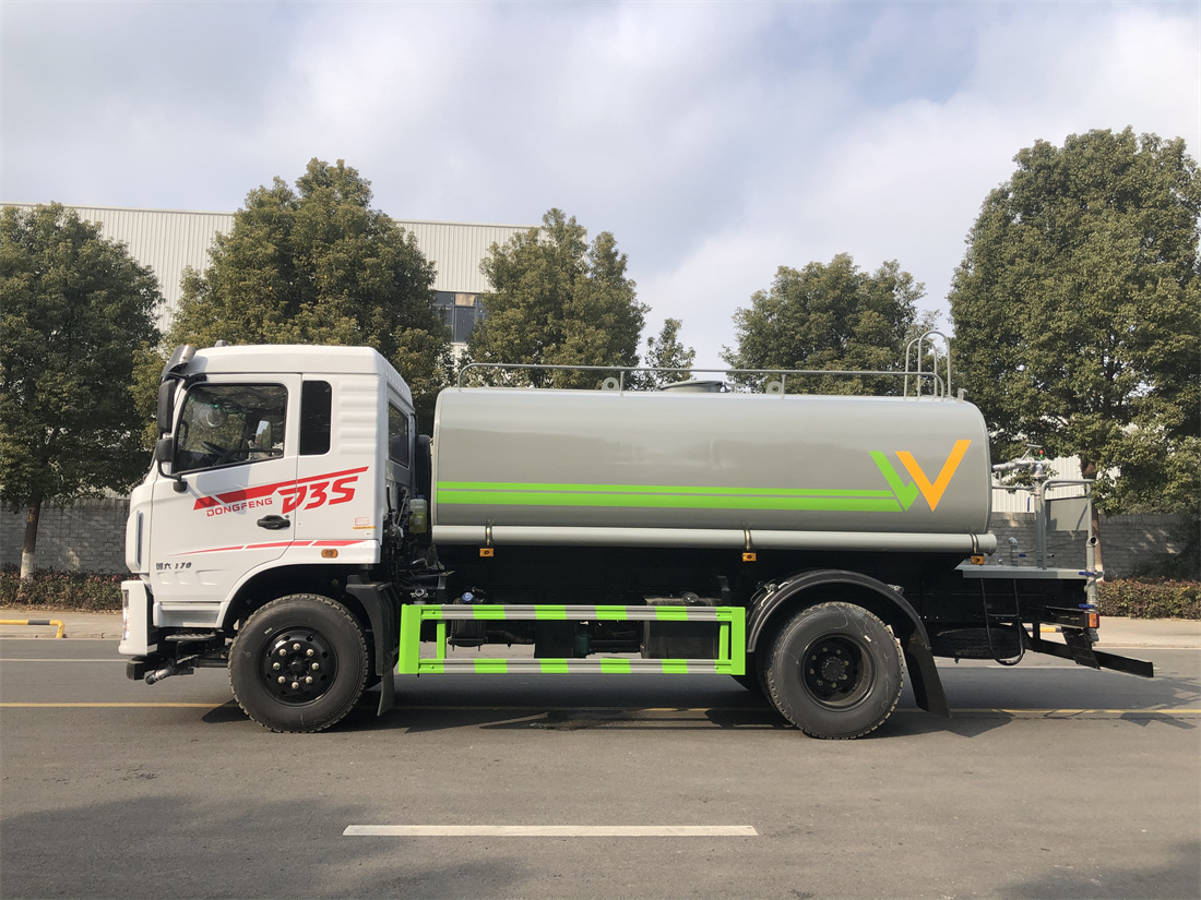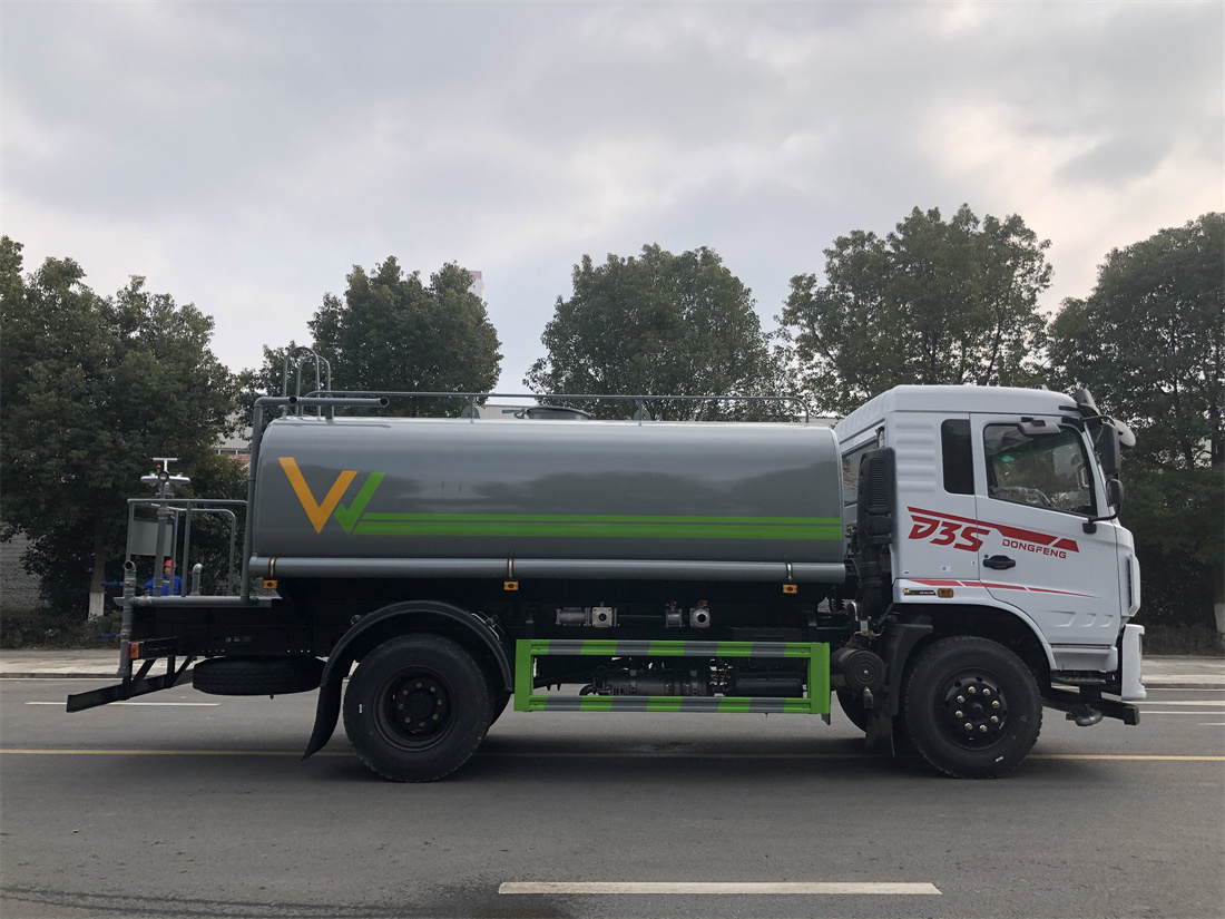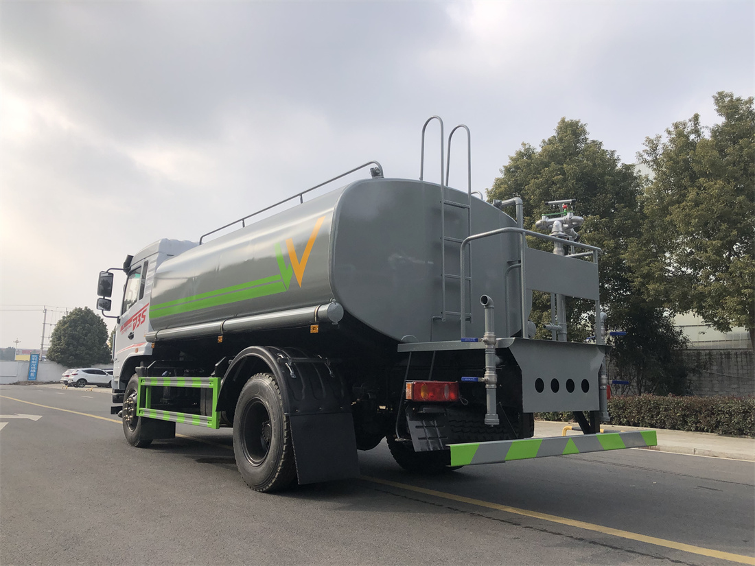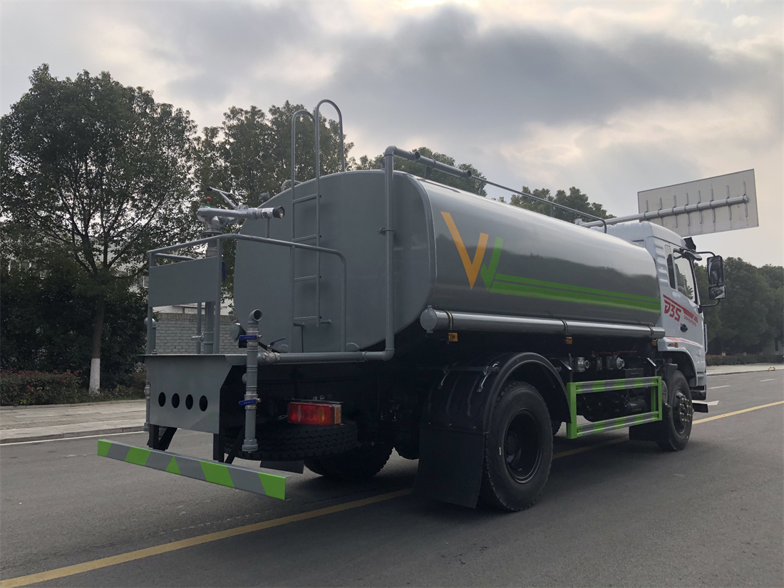 灑水車前裝有鴨形噴嘴或圓頭沖嘴,后面裝有圓柱開灑水噴嘴或蓮蓬頭噴嘴,后部有一工作平臺,裝配有水炮。后部還可裝8個噴嘴(選裝)。