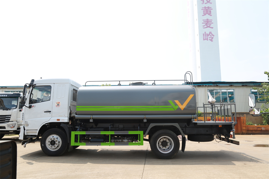 灑水車前裝有鴨形噴嘴或圓頭沖嘴,后面裝有圓柱開灑水噴嘴或蓮蓬頭噴嘴,后部有一工作平臺,裝配有水炮。后部還可裝8個噴嘴(選裝)。