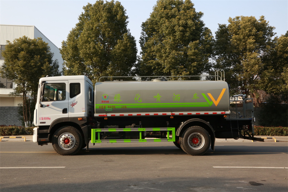 灑水車性能特點:前沖(噴)后灑,帶側噴,罐體后帶工作平臺,平臺上安裝綠化灑水炮,灑水炮可360旋轉,可連續(xù)調成直沖狀、大雨、小雨、毛毛雨,帶安全護欄,配備全國質量評比**名的杭州威龍大功率專用 灑水泵,泵可自吸自排,安裝過濾網(wǎng),帶消防接口,可通過消防栓進水,帶自流閥,隨車選裝20米綠化卷盤,可噴灑農(nóng)藥。