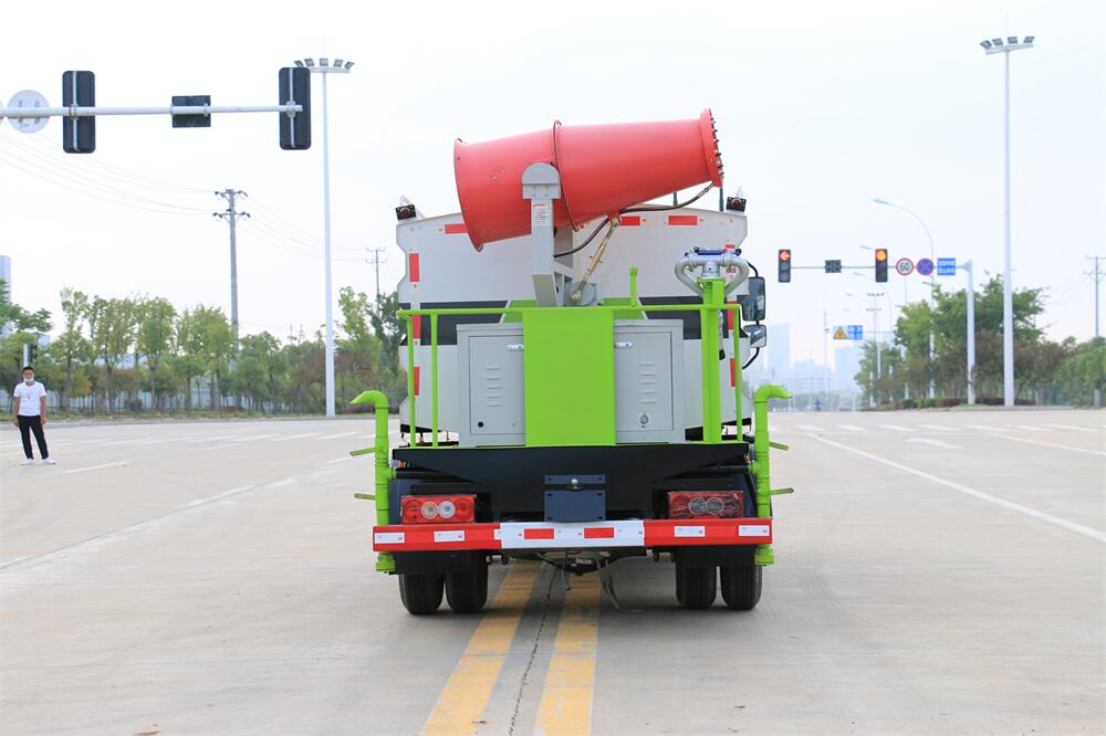 上裝配置:罐體容積為 5立方,選配風(fēng)送式霧炮機(jī)組射程30米、40米、50米、60米、80米、100米、120米霧炮,罐體鋼板為4mm碳鋼Q235材質(zhì),罐內(nèi)隔板具有防波作用,以減輕汽車行駛時(shí)罐體液體沖擊,罐體及整車外形尺寸按照公告。帶大功率專用灑水泵,泵可自吸自排,整車前沖、后灑、側(cè)噴、帶65消防接口,后平臺(tái)配CLW-50、CLW-60、CLW-80、CLW-100、CLW-120型風(fēng)送式霧炮機(jī)組;罐體前封頭配大功率柴油發(fā)電機(jī)組;前封頭帶水位計(jì),后平臺(tái)主管路帶1寸澆花接口,后爬梯。帶兩根輸水管及陰陽(yáng)端。罐體顏色:銀/灰/綠,罐體兩側(cè)噴“多功能抑塵車”字樣,貼反光標(biāo)示。