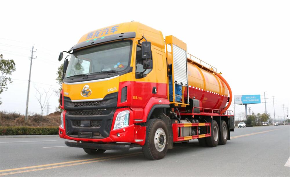 上裝配置:罐體容積為 22 立方(水污可自由 分配),罐體 8mm 厚,封頭 8mm 厚,水罐、污 罐可互通,用 100 球閥**開關;清洗部份采 用品孚高壓泵,壓力 20Mpa,流量 330L/min, 配 80 米直徑 25 高壓管帶液壓卷盤;吸污部份 采用濰柴420馬力副發動機帶山東SK-42水循 環泵(副發自帶),吸污罐帶舉升,尾部加裝 一個 600mm 快開,罐體后尾部一個 DN150 不銹 鋼排污口,一個 DN150 不銹鋼偷排,兩個 DN100 吸污球閥帶出口盤,一個視污窗,兩根 10m 吸 污管,一套陰陽端,壓力表,防溢閥,箭頭燈, 工具箱,淋管裝置,高壓泵帶氣吹水,配一個 9 公斤水雷噴頭,另帶一個 80 公分手持洗車 噴頭。
