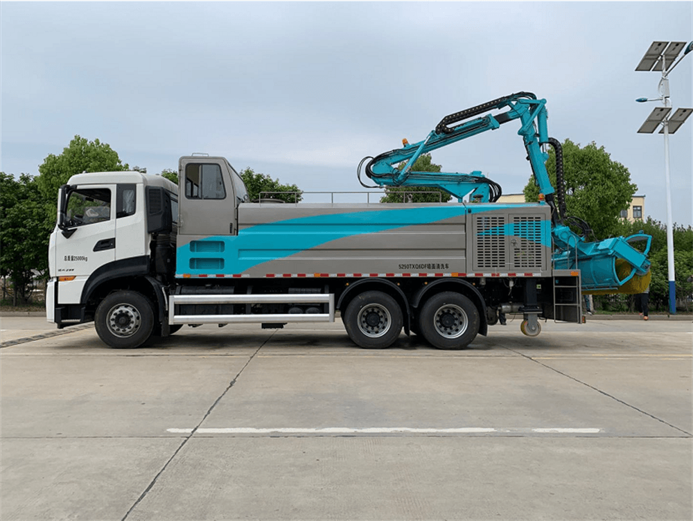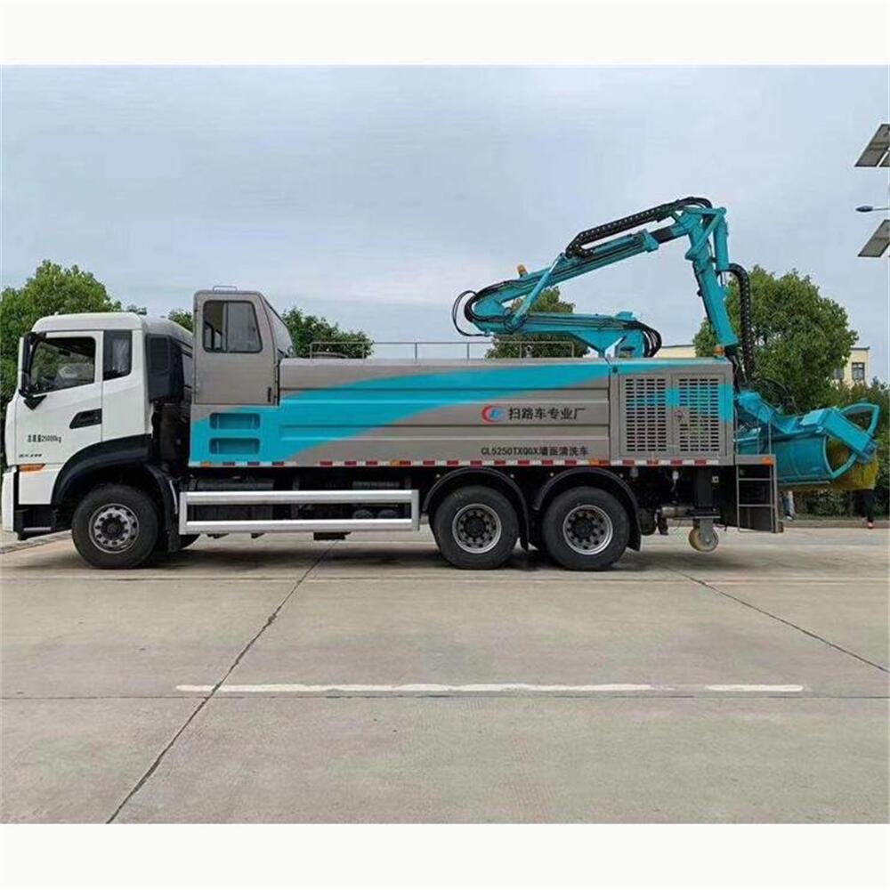 HCQ5250TXQDF6墻面清洗車是湖北五環聯合長沙智能研究院推出的天龍高端墻面清洗車。該車采用東風汽車股份有限公司DFH1250D4國六二類底盤改裝,加裝了副發動機、液壓系統、高壓水泵、清水箱、洗滌劑箱、副駕駛室、折疊式清洗機構、專用電控系統和橫向穩定支撐輪機構等組成。
