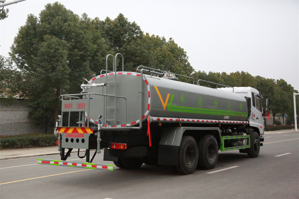 灑水車前裝有鴨形噴嘴或圓頭沖嘴,后面裝有圓柱開灑水噴嘴或蓮蓬頭噴嘴,后部有一工作平臺,裝配有水炮。后部還可裝8個噴嘴(選裝)。